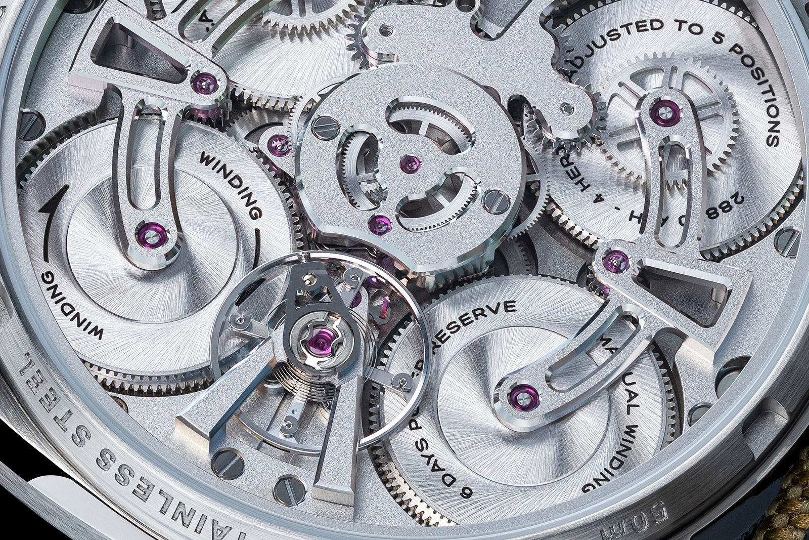 The second crown rotates the inner 24-hour bezel to match the wearer’s location, which then indicates the times in every other time zone.