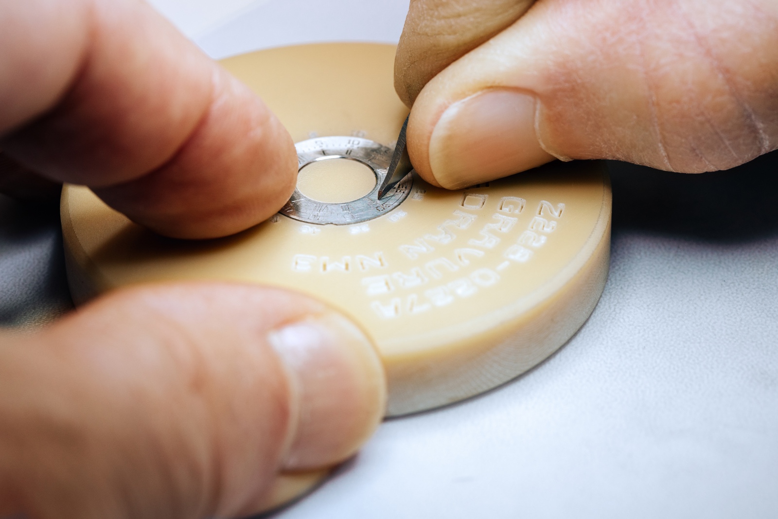 Free-hand engraving of the solid white gold dial. Image – Ferdinand Berthoud