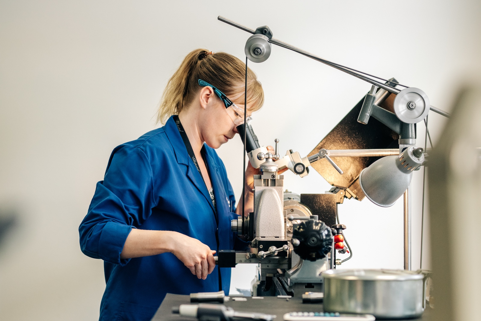 The production of the Montre 3 relies on hand-operated machines. Image – Ferdinand Berthoud