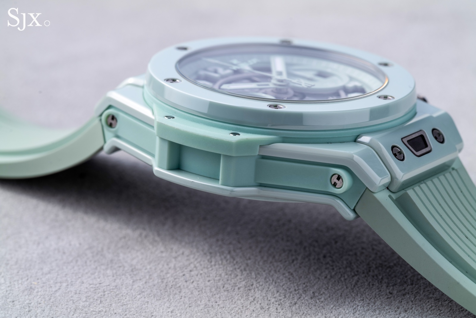 The new Big Bang in mint green ceramic is a testament to the power of colour. Light, delicate colours like mint green are difficult to render in ceramic, due to the way the coloured pigments behave at the high temperatures required to manufacture the components.