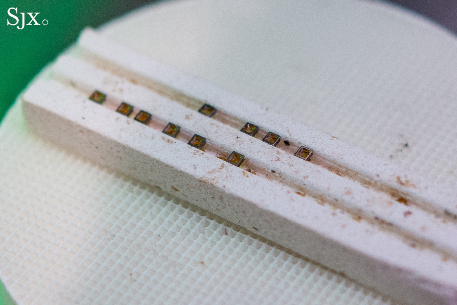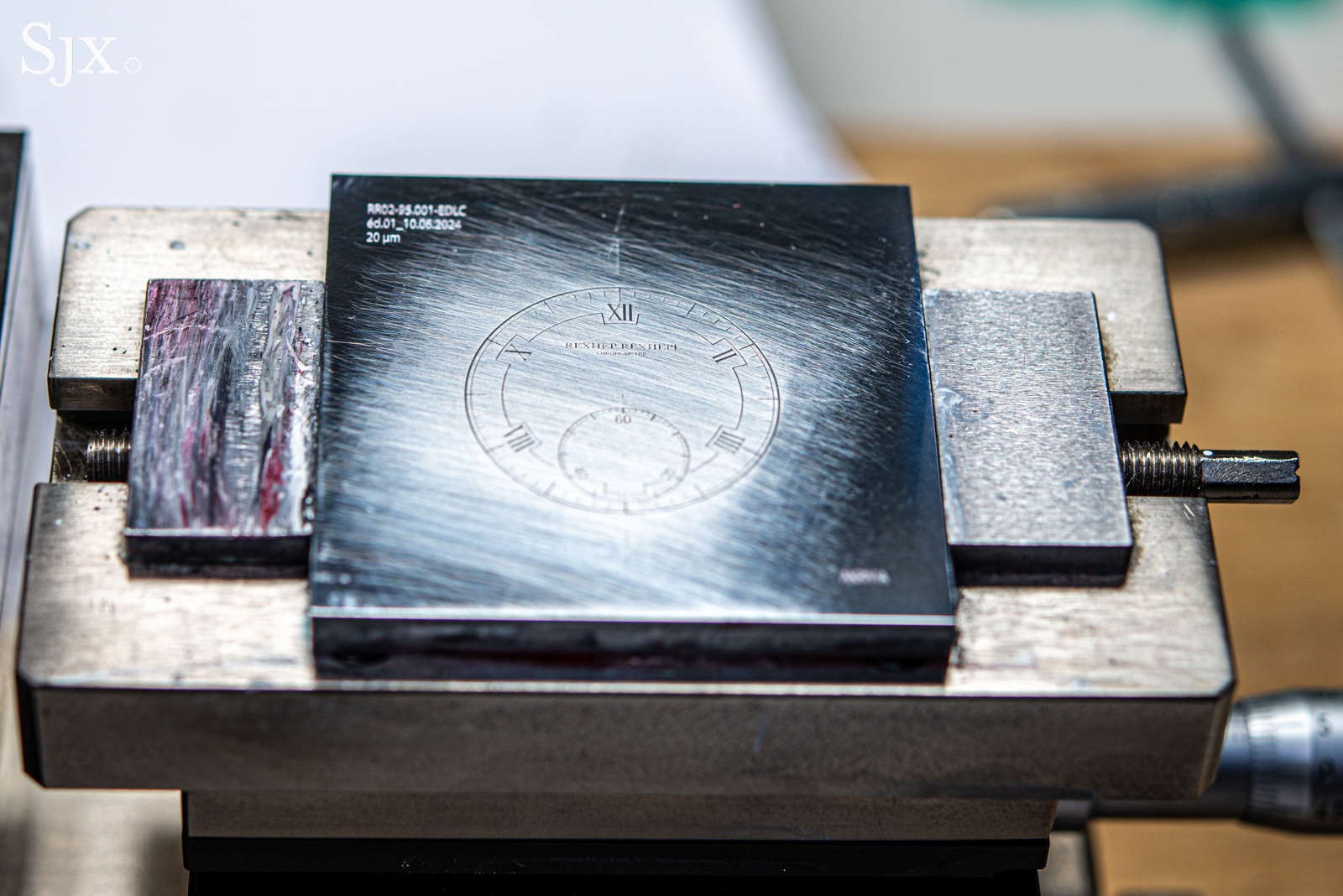 Hour markers for the Louis Vuitton x Rexhep Rexhepi LVRR-01 Chronographe à Sonnerie feature translucent enamel; here several are shown cooling