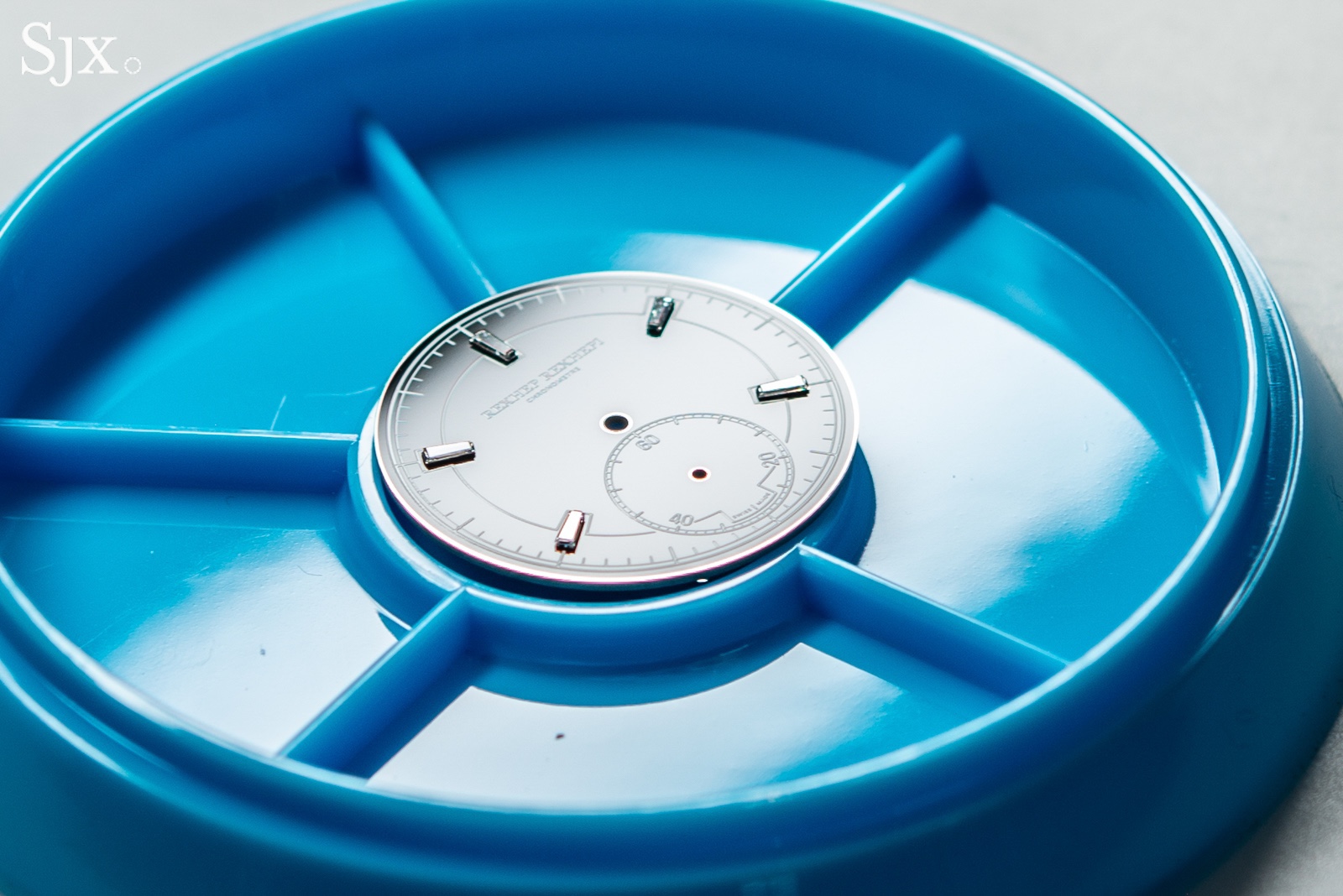 Tampography is the process of printing the dial with a gelatinous transfer pad. A routine practice throughout the industry, we’ve seen this process before at other dial makers like F.P. Journe’s Les Cadraniers de Genève.