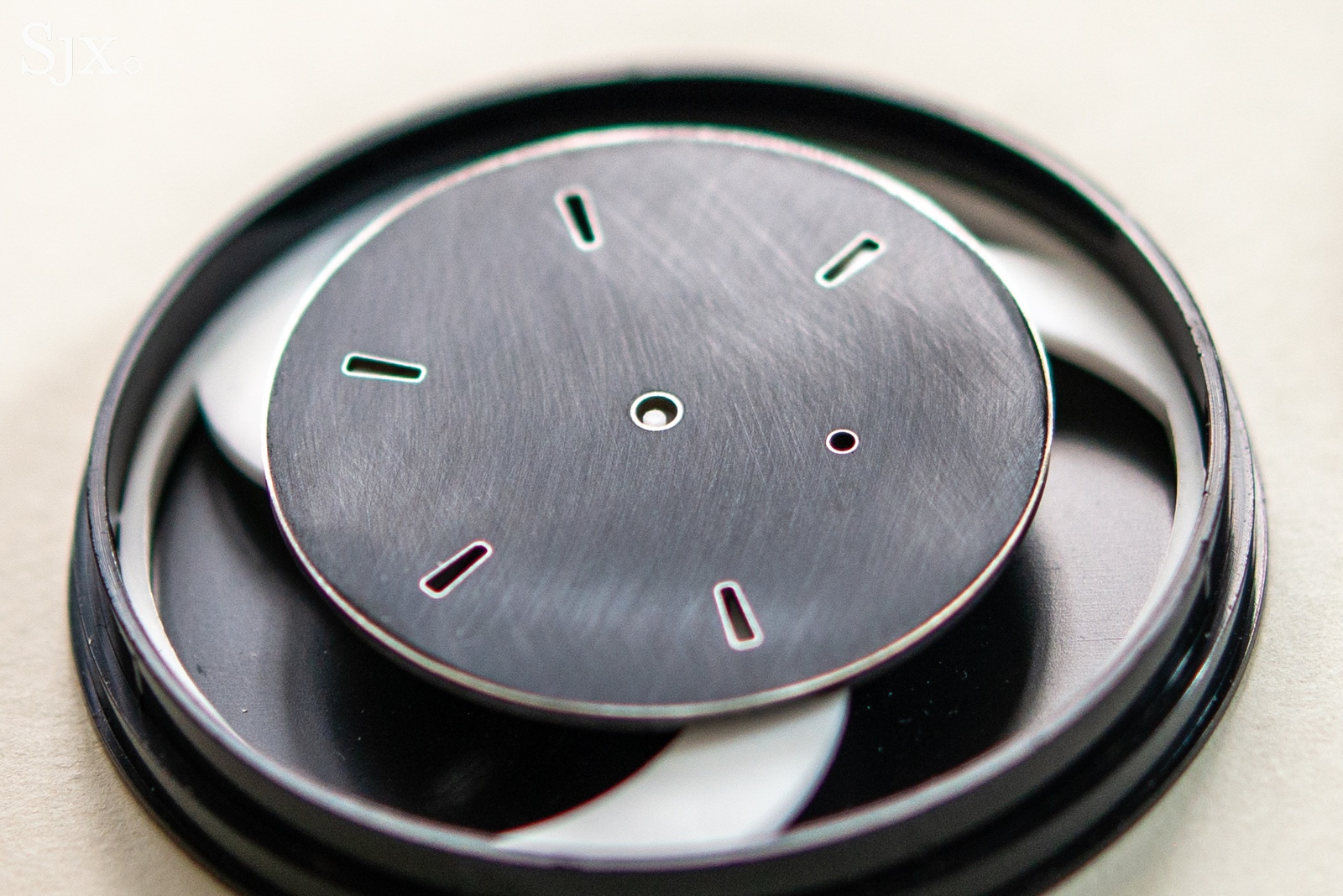 The plate then slides away, bringing the real dial into place underneath the transfer pad, which is then brought down swiftly, printing one layer on the dial. The process is usually repeated multiple times to achieve the glossy, domed markings that most collectors expect.