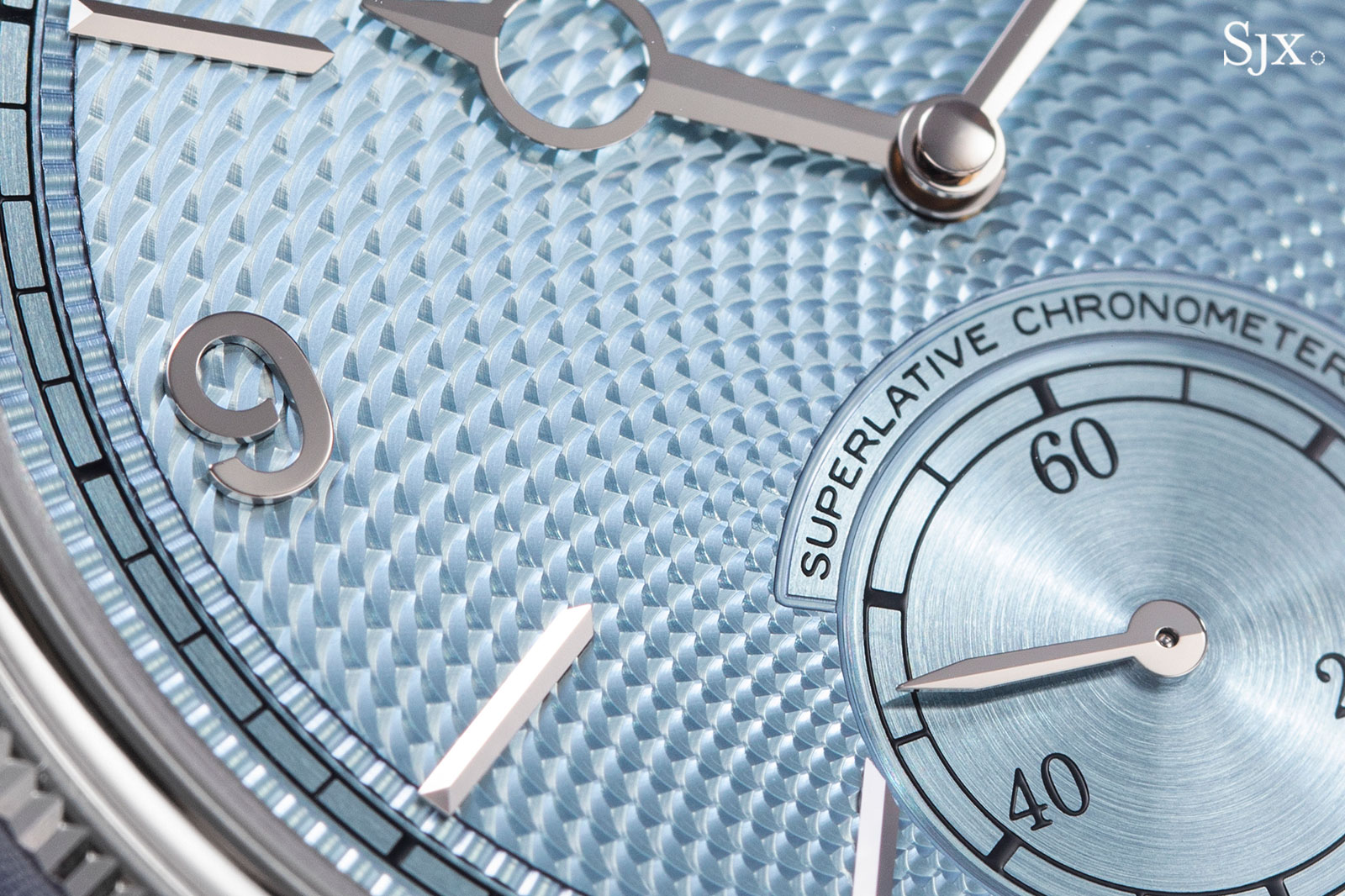 In fact, the JCB-003 movement has too much finishing for me, particularly the hobnail guilloche on the bridges (that is nonetheless done on a hand-operate straight-line engine). I would have preferred a cleaner surface finish, for instance traditional frosting or striping.