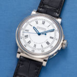 Both the main dial and the flange for the seconds are made of solid white gold and free-hand engraved and lacquered. The movement is also engraved with flowing script that translates as, “Dedicated to time, the great teacher.” This is said to be a maxim of Louis Berthoud, Ferdinand’s nephew who took over the business after his death and who was a renowned watchmaker in his own right. For a watch that takes so much time to make, this inscription is fitting.