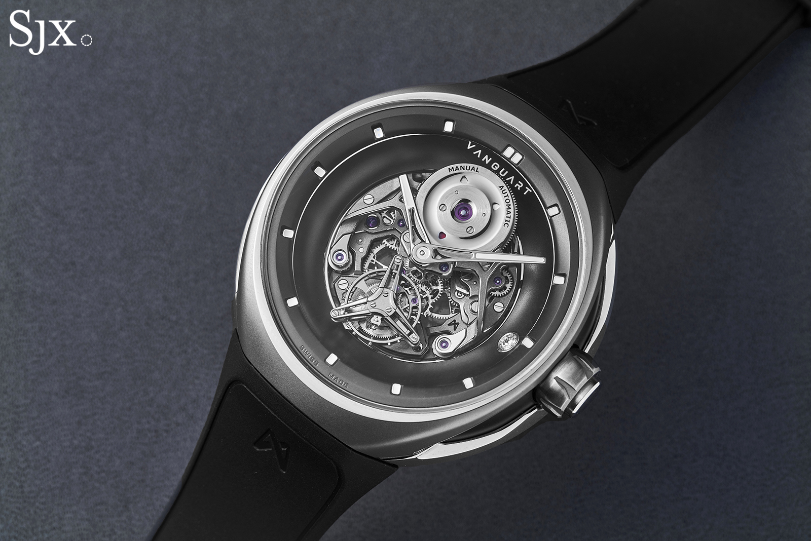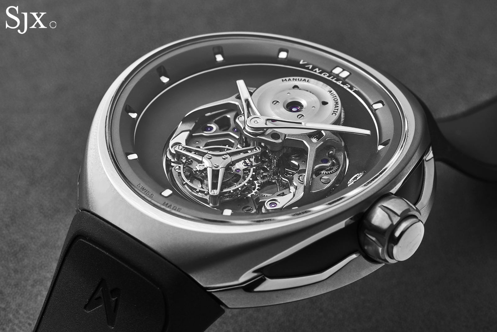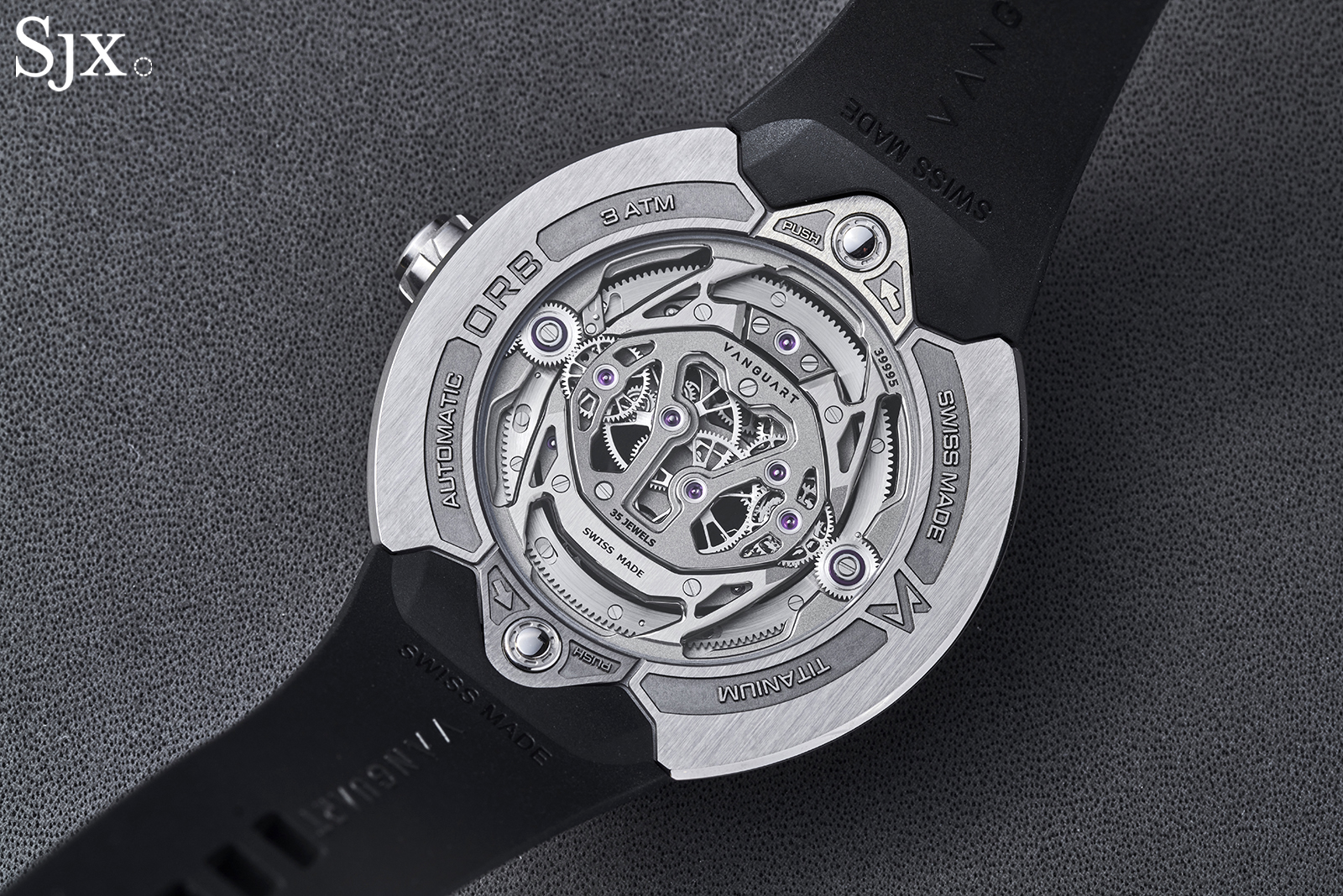 The Orb looks big but is actually smaller than usual for this class of watch. The case is 41 mm wide, with no lugs, while the height is 10.5 mm. Wearability can be iffy for integrated rubber straps (Hublot is a case in point), but the Orb has an ergonomic profile. At the same time, Vanguart offers a range of rubber straps with varied angles for an ideal fit.