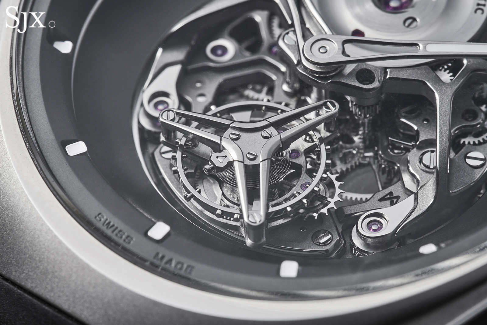 And at six o’clock is the flying tourbillon, the most logical type for the architecture since it does away with an upper bridge.