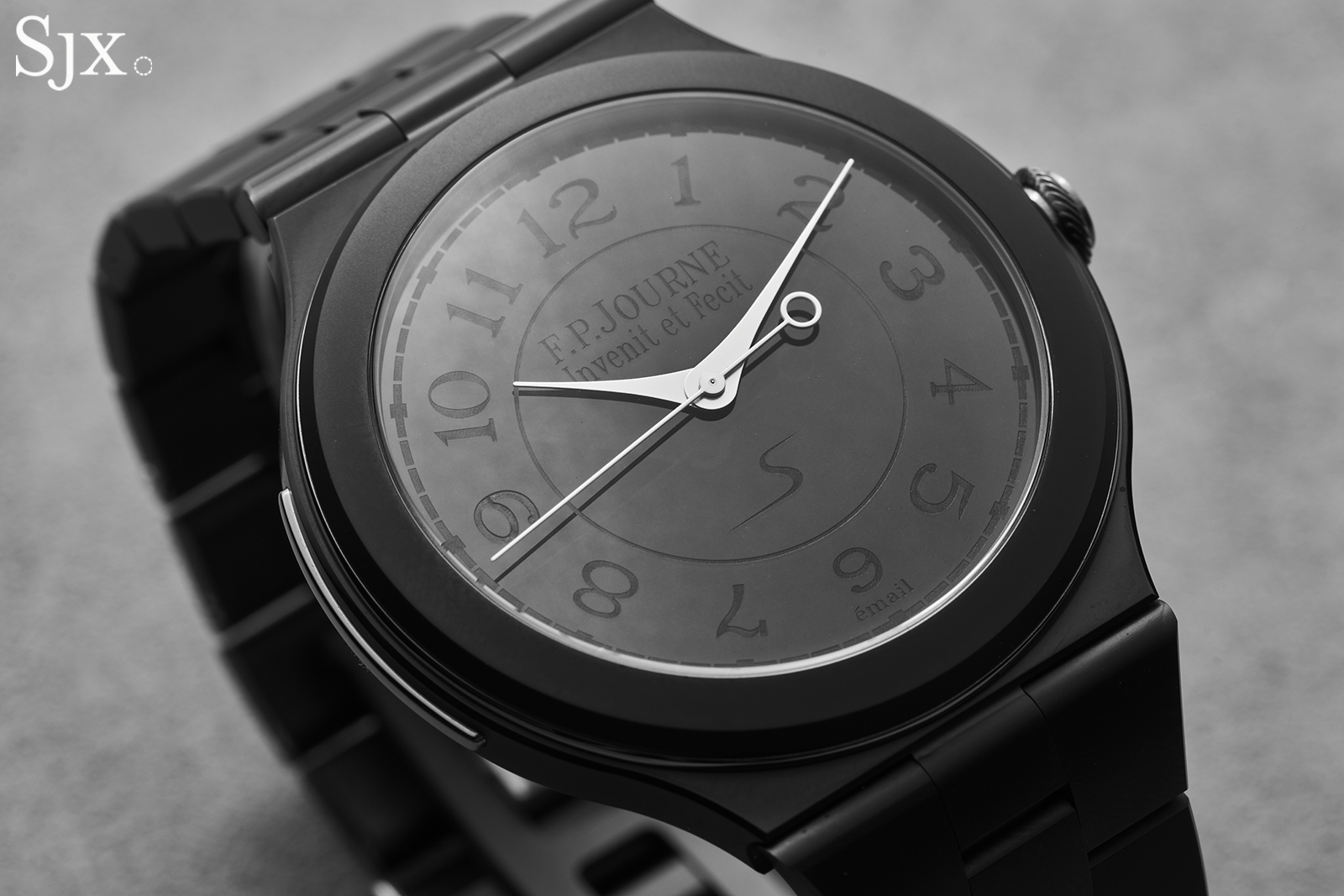 That degree of success has allowed Francois-Paul Journe to expand his manufacture, an achievement that is encapsulated by the new Chronomètre Furtif. The case and bracelet are in ultra-hard tungsten carbide, while the dial is laser-engraved grand feu enamel – and everything is made in-house at the F.P. Journe dial and case-making facility in Geneva.