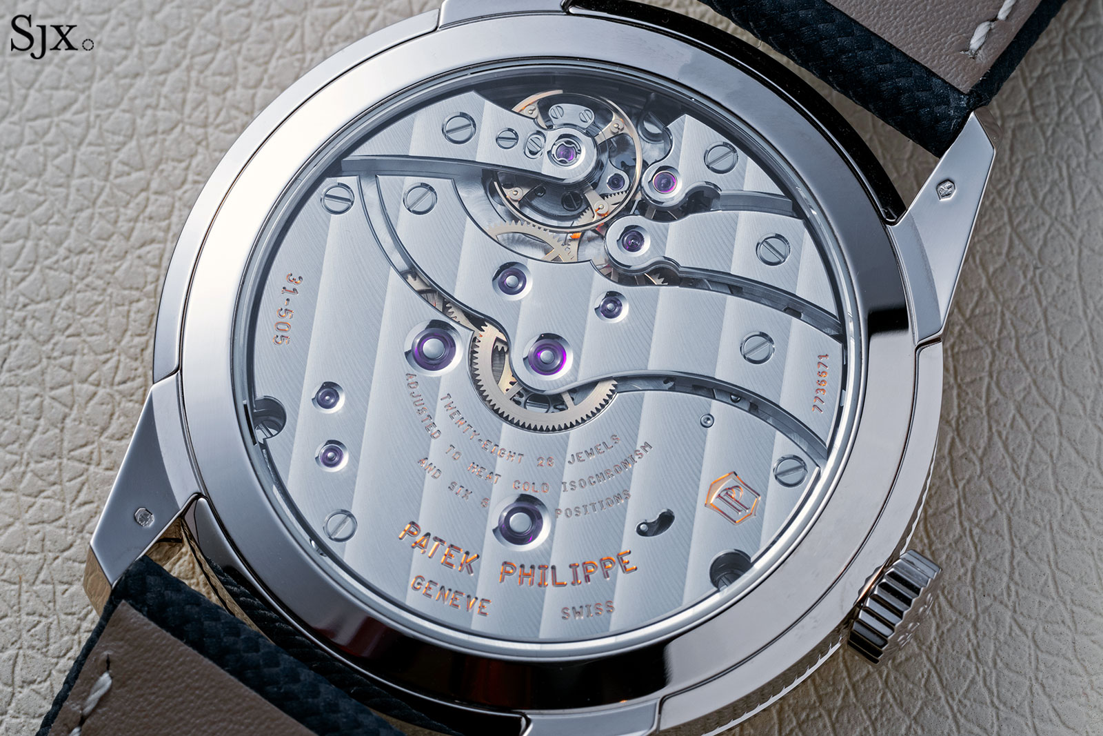 The most interesting Patek Philippe in technical terms was the Calatrave 8-Day Power Reserve ref. 5328G with an instantaneous day and date display. Though less interesting on the front, the ref. 5328G is powered by the all-new cal. 31‑505 8J PS IRM CI J that’s the brand’s first new extended power reserve movement in a long time.