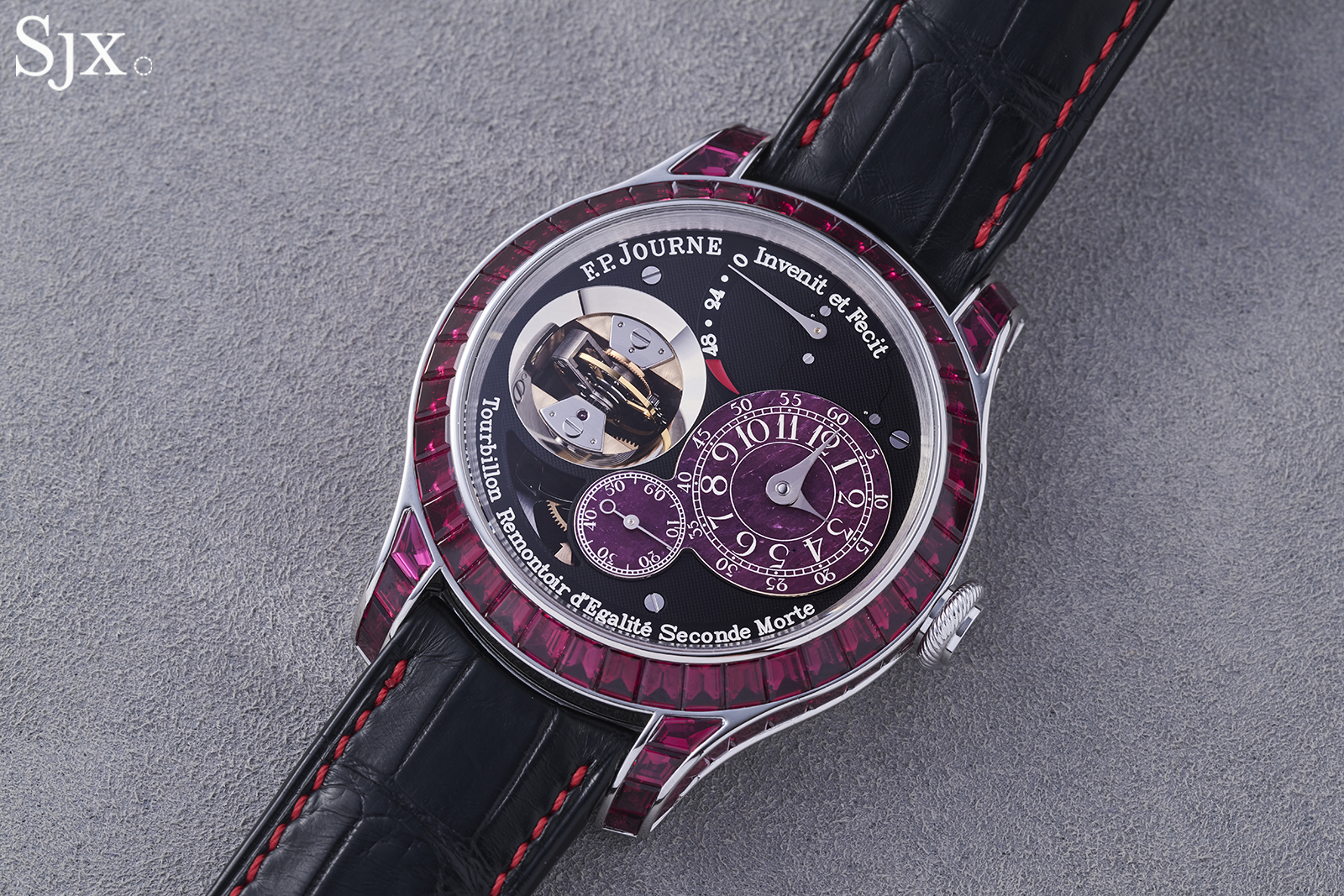 His success has also allowed Francois-Paul Journe to do crazy things for an independent watchmaker, like the Tourbillon Souverain Joaillerie Rubis, a unique version of the Tourbillon Vertical. This unique piece is set with some 25 carats of baguette-cut rubies, which in turn required over 80 carats of rubies to be cut down to size in order to fit the case.