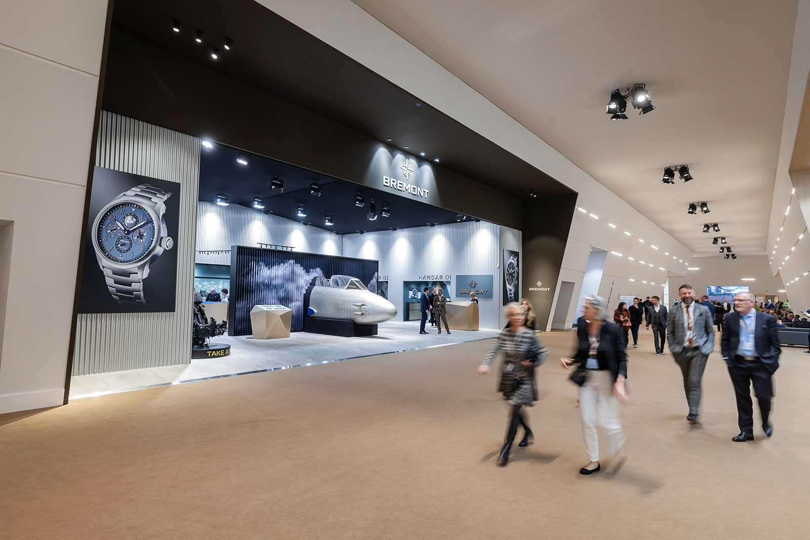 The Bremont booth at W&W, complete with the cockpit and nose of a 1940s Gloster Meteor, the first jet fighter of the Royal Air Force. Image – Watches & Wonders
