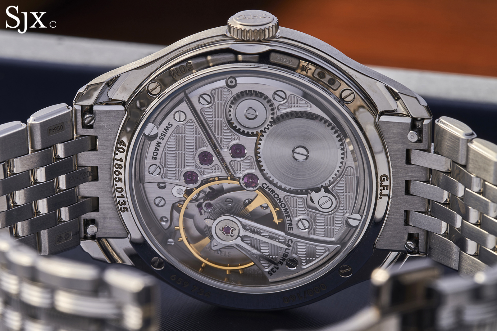 The movement inside the Zenith G.F.J. is essentially a replica of the cal. 135, with a few improvements