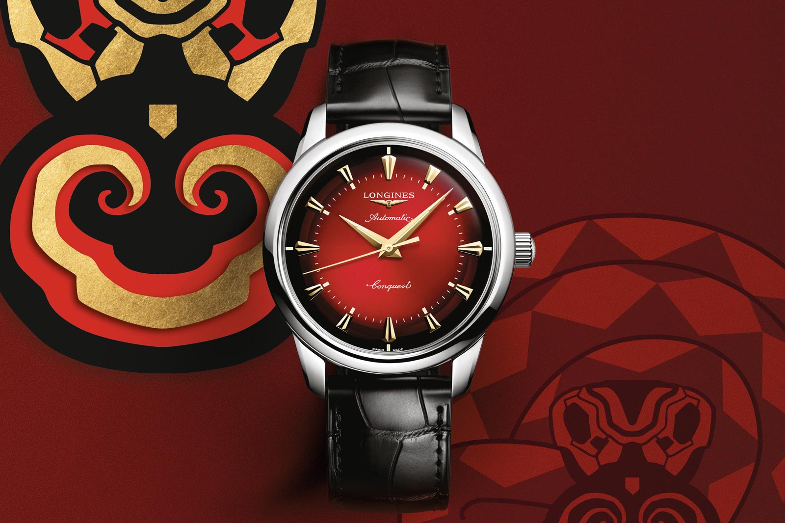 Ordinarily a faithful vintage remake with an old-school aesthetic, the Conquest Heritage gets a makeover for the Chinese Lunar New Year. The Conquest Heritage Year of the Snake stands out with a striking red gradient dial featuring gold-plated hands and indices. And for the occasion, the back bears an engraved snake motif penned by Chinese contemporary artist Wu Jian’an, who drew inspiration from the ancient Chinese fable, “Legend of the White Snake”.