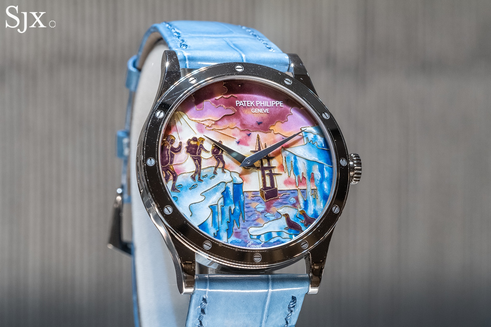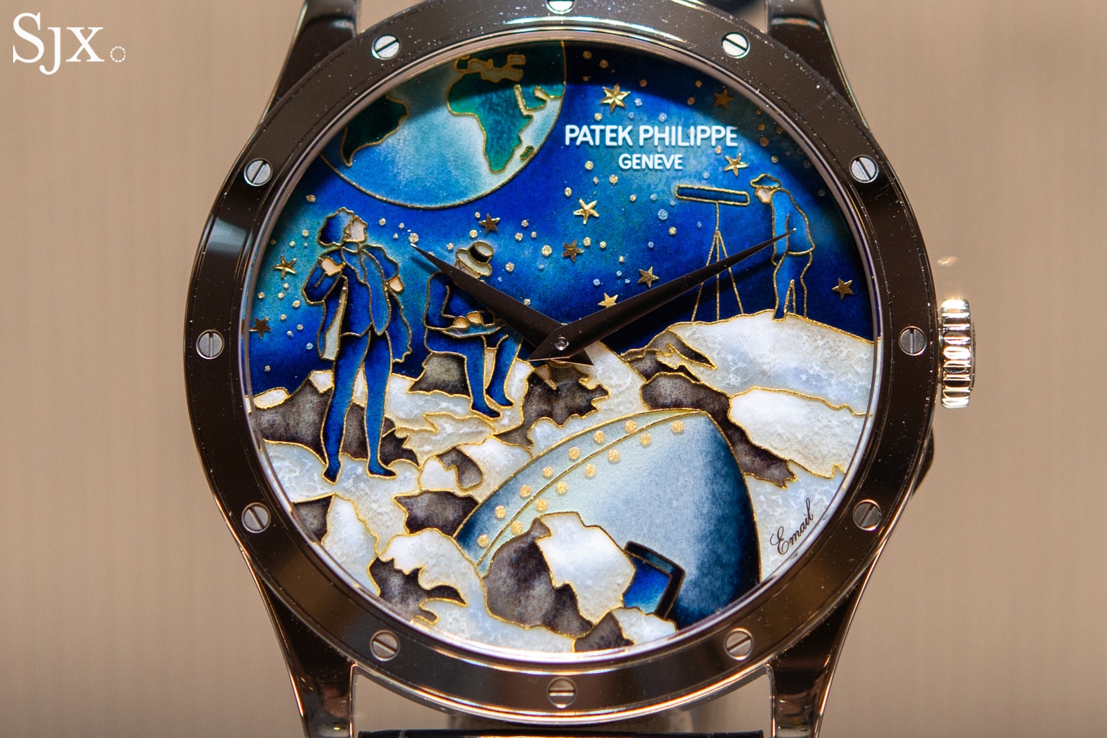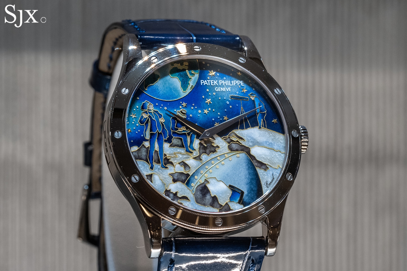 Arguably saving the best for last, we have the Calatrava ref. 5086G-001 “From Earth to the moon” and ref. 5086G-010 “The adventures of Captain Hatteras” which use cloisonné enamel to depict scenes from their namesake novels by Jules Verne.