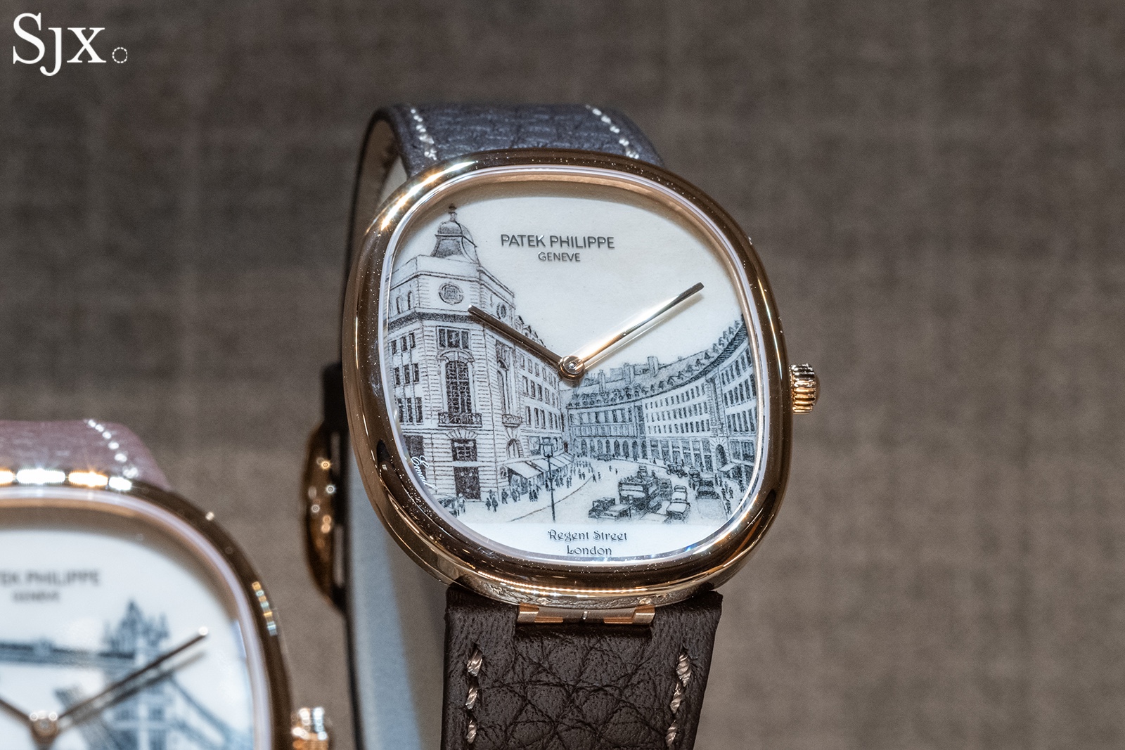 First up is a set of three views of “London of Yesteryear” rendered in monochromatic enamel. The Golden Ellipse ref. 5738/50R-018 “Tower Bridge” is probably my favourite, but I do have a soft spot for London’s famous shopping street so the ref. 5738/50R-020 “Regent Street” speaks to me as well.