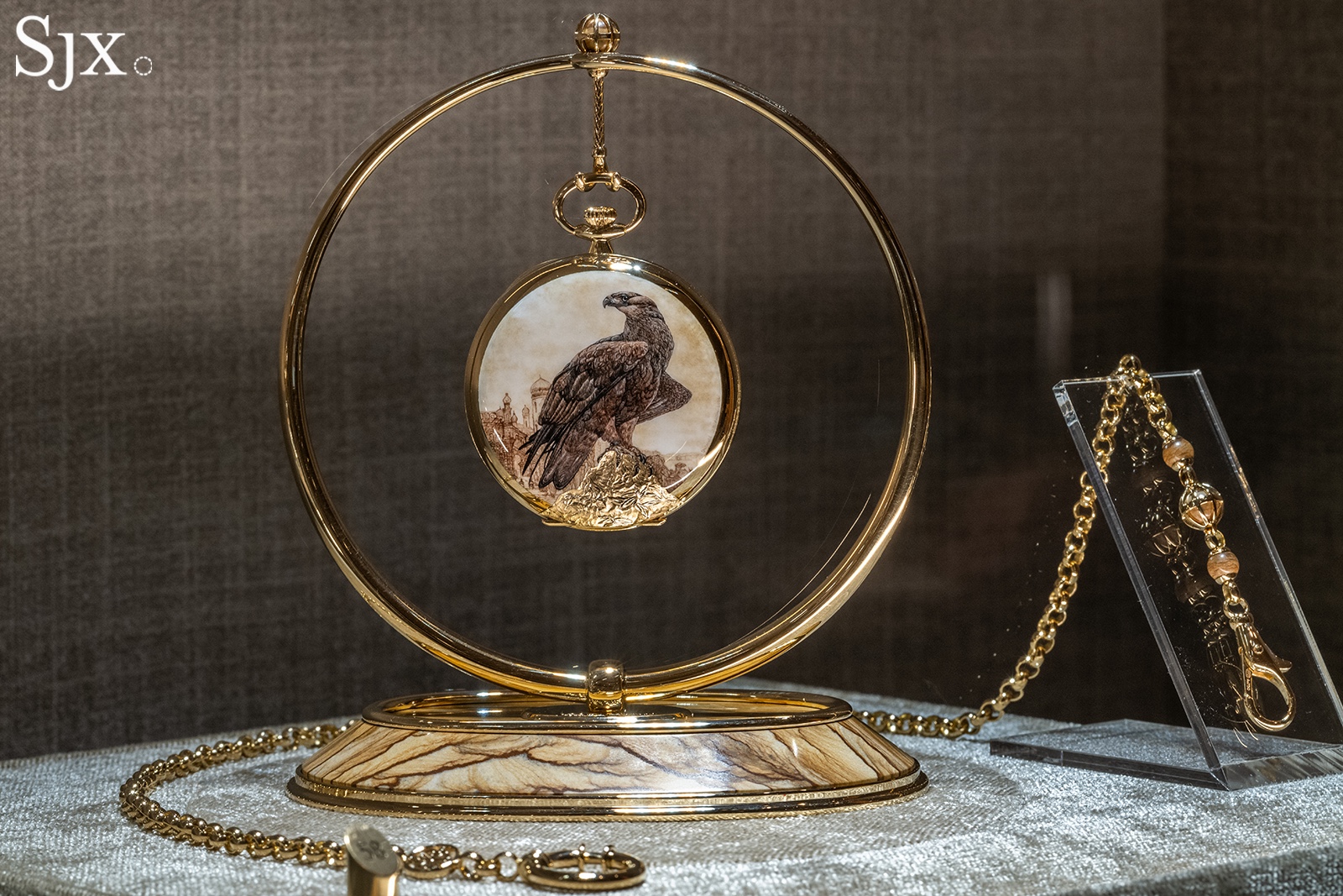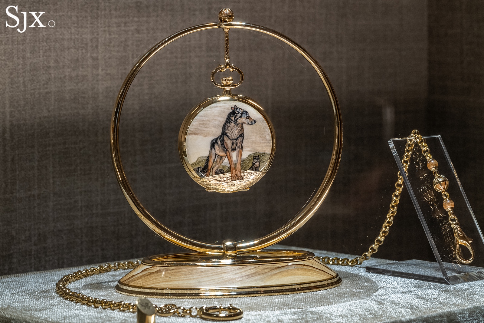 Finally, the Pocket Watch ref. 984/101J-001 “Eagle and Wolf” is unique piece that contains two enamel paintings, one on each side, inspired by the work of Edward Julius Detmold and his twin brother Charles Maurice, who specialised in naturalistic illustrations.