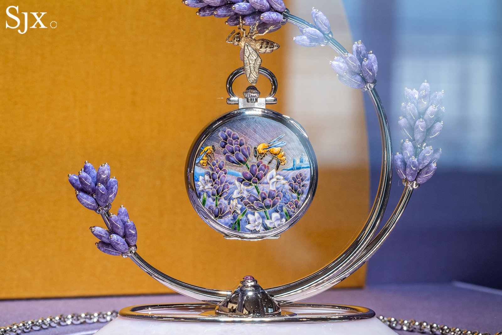 This year’s assortment of pocket watches felt lighter than usual, despite some standouts like the Pocket Watch ref. 992/183G-001 “Provence”, which depicts the region’s iconic lavender fields and the honeybees that pollinate them. The dial is decorated with a radial guilloche pattern and enamelled lavender whorls.