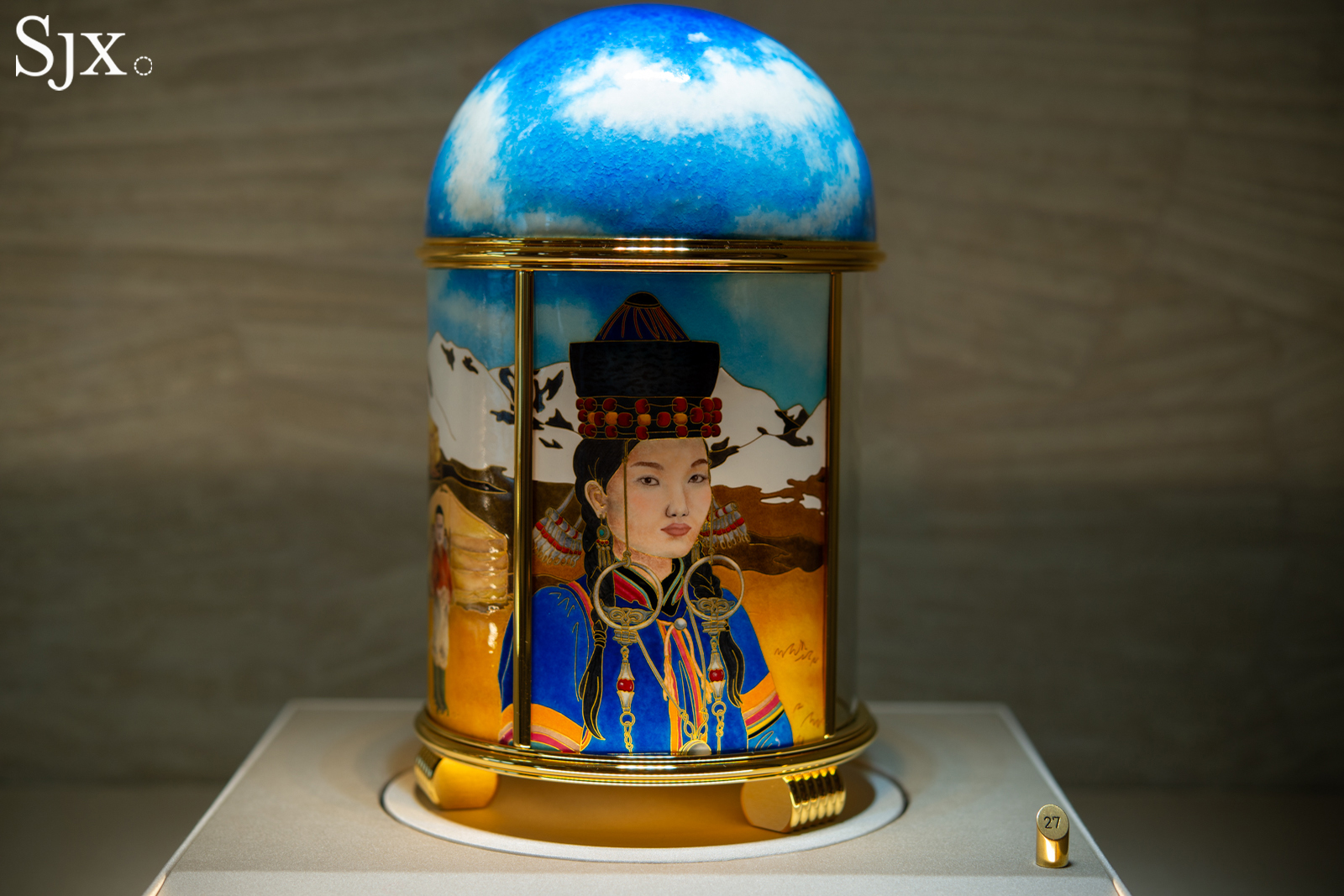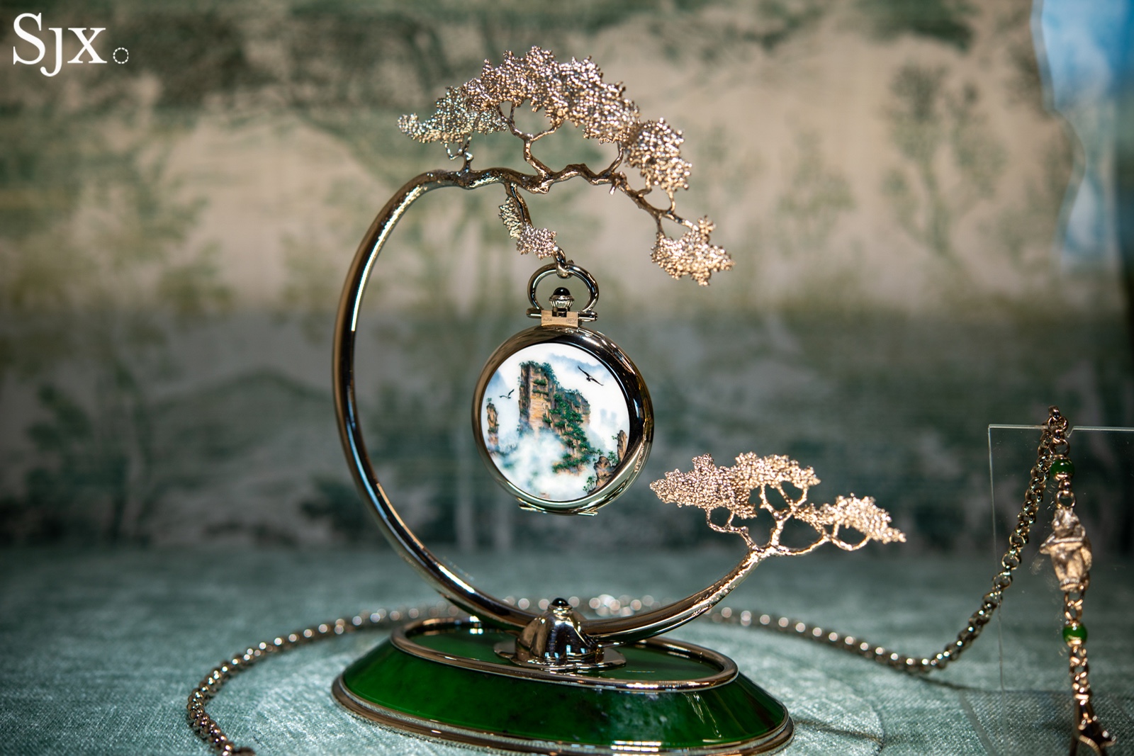 Visiting the Rare Handcrafts exhibit is enjoyable because intellectually it’s a level playing field; it’s mostly the same clocks and watches with the same specs and movements dressed up in different ways. This fact makes it easier to pay attention to one’s own heart, and to get drawn into the creations on an emotional level.