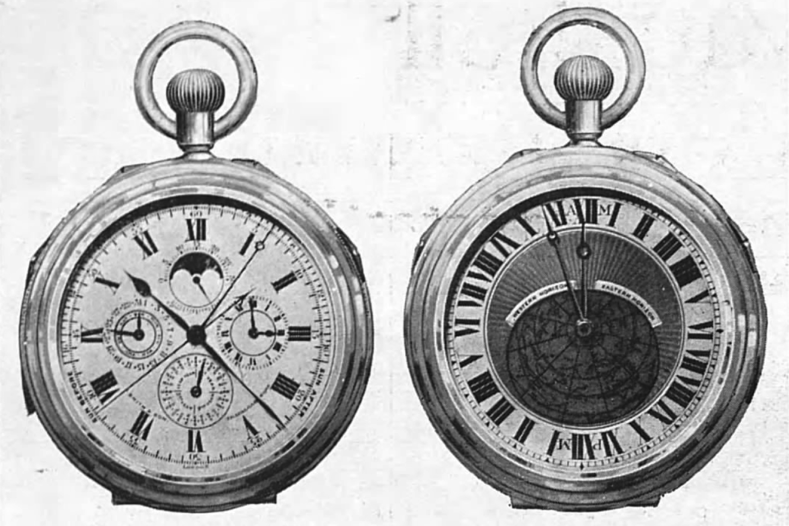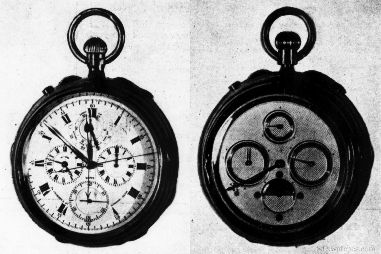 According to F. Louis Elisée Piguet: Six Générations d’Horlogers de La Vallée de Joux, Louis Elysee Piguet’s archives list a pair of matching duo-face English-style ebauches (8’400 and 8’401). Piguet sold both movements to Capt & Cie. in 1904 for the princely sum of 3500 francs each, so there are likely two of these watches. David Penny’s reprint of the 1910 Nicole, Nielsen & Co. catalog lists these movements as the Type 50, the most complicated watch offered, with pricing on request.