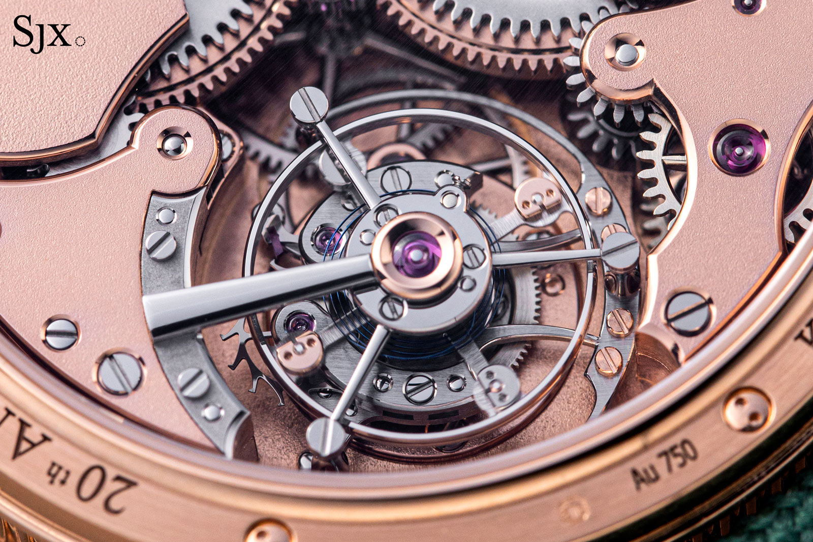 Voutilainen tourbillon movement with a hairspring featuring an inner Grossmann curve.